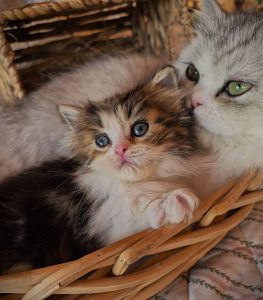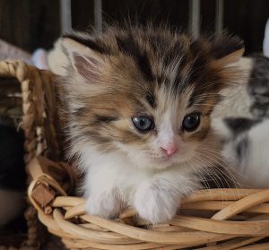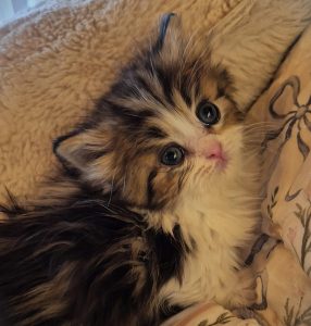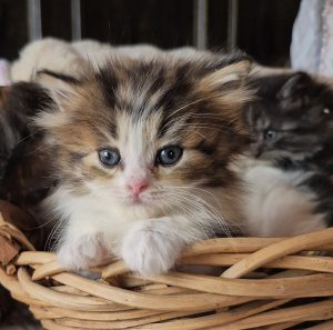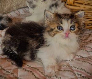 Maggie is a brown tabby /white bicolor girl, long fur, short legs. $2000